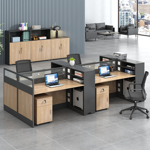 Moderner modularer Schreibtisch aus Holz 4-Personen-Arbeitsplatz Büromöbel aus China